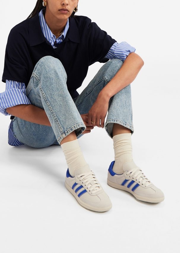 Designed in collaboration with Pharrell Williams, the adidas Humanrace Samba sneakers sport a fresh new look, crafted from smooth leather in an off-white hue with a suede T-toe, leather 3-Stripes with serrated stitching and embossed branding on the sidewall. We love the off-white rubber midsole to tie in the neutral look adding versatility to this streetwear favourite.