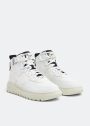 The Nike Air Force 1 High Utility 2.0 sneakers are designed with a tough, military-like inspiration. Made from heavy-duty tumbled coated leather upper, they feature large, winter-ready lugs on the outsole giving you traction along with a strap that uses a sleek metal hook emblematic of traditional military dress.