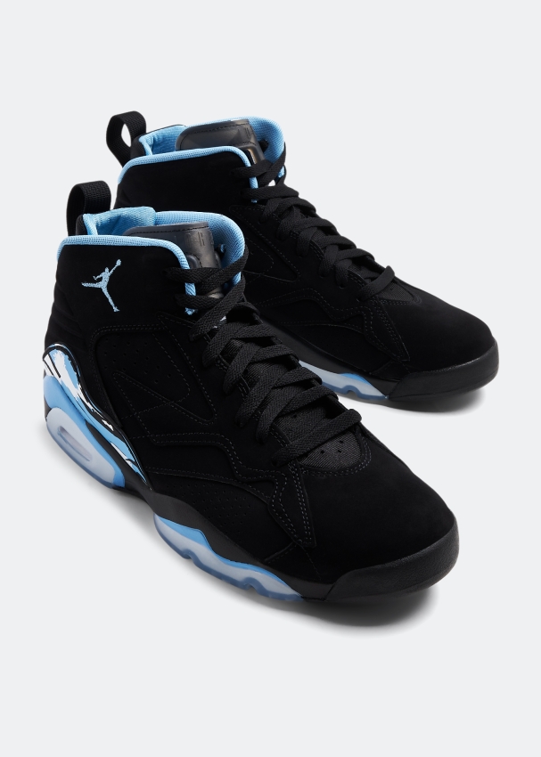 These Nike Jordan MVP 'University Blue' sneakers fuse both contemporary designs with elements from the three silhouettes worn during MJ and the Bull’s first three-peat. Presented in a black leather upper, these sneakers feature University Blue contrasting accents throughout along with a Jumpman brand signature, TPU paint strokes, midsole, and icy translucent outsole.