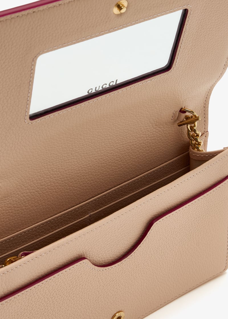 Presented in Gucci Rosso Ancora red and pink leather, this GG Marmont mini chain bag by Gucci will add a contemporary charm and feel to your edit. It's designed with a Double G detail, six card slots, an interior mirror, and a removable chain shoulder strap.