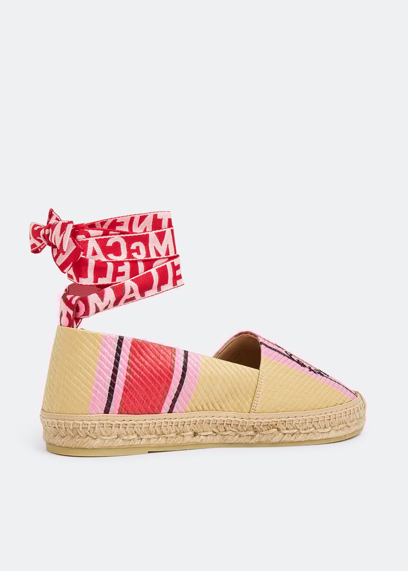 Capturing a timeless summer vibe with a carefree attitude, Stella McCartney's Gaia espadrilles are updated in striped raffia using a springtime palette to elevate this cherished favourite style. Set atop a classic, natural braided jute sole, this Spanish-made pair is finished with a detachable wraparound ankle ribbon in the signature contrasting logo canvas.