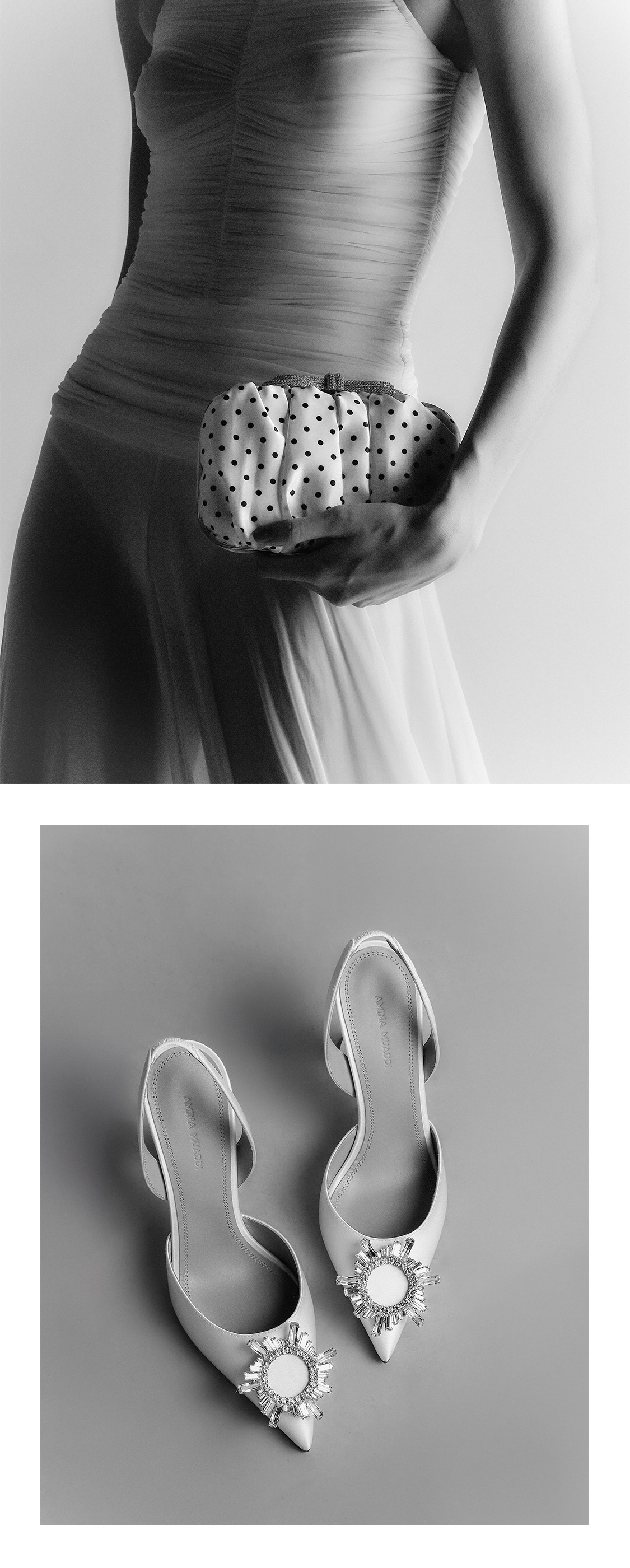 Your gown may be the main character, but your shoes do the heavy lifting and they deserve their close-up. From Jimmy Choo patent leather pumps to Amina Muaddi embellished slingbacks, our bridal edit ensures she sparkles with every step long after the bouquet is tossed. Add a MACH & MACH satin clutch and a Self-Portrait pearl bracelet for a timeless look built for the ‘gram and beyond.